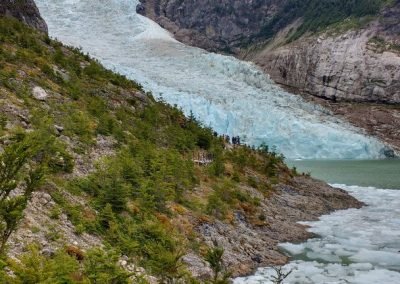 El pasajero deberá presentarse en las oficinas a las 07 15 am, luego de hacer el chek in nos dirigiremos al sector de Puerto Bories donde comenzará nuestra aventura. Después de embarcar, navegaremos hacia el monte Balmaceda (2035 mts) por el canal Señoret. En este viaje usted podrá observar y disfrutar de mini cascadas de agua, toninas, colonias de cormoranes, lobos marinos y diferentes tipos de aves. Al llegar a Puerto Toro desembarcaremos y comenzaremos una caminata de 1 hora app (ida y vuelta), por la orilla de la laguna de los témpanos hasta llegar al glaciar Serrano. De vuelta pararemos en una estancia para almorzar un asado de cordero muy típico de la zona. Regreso a Puerto Natales y llegada aproximada 18 00 hrs.